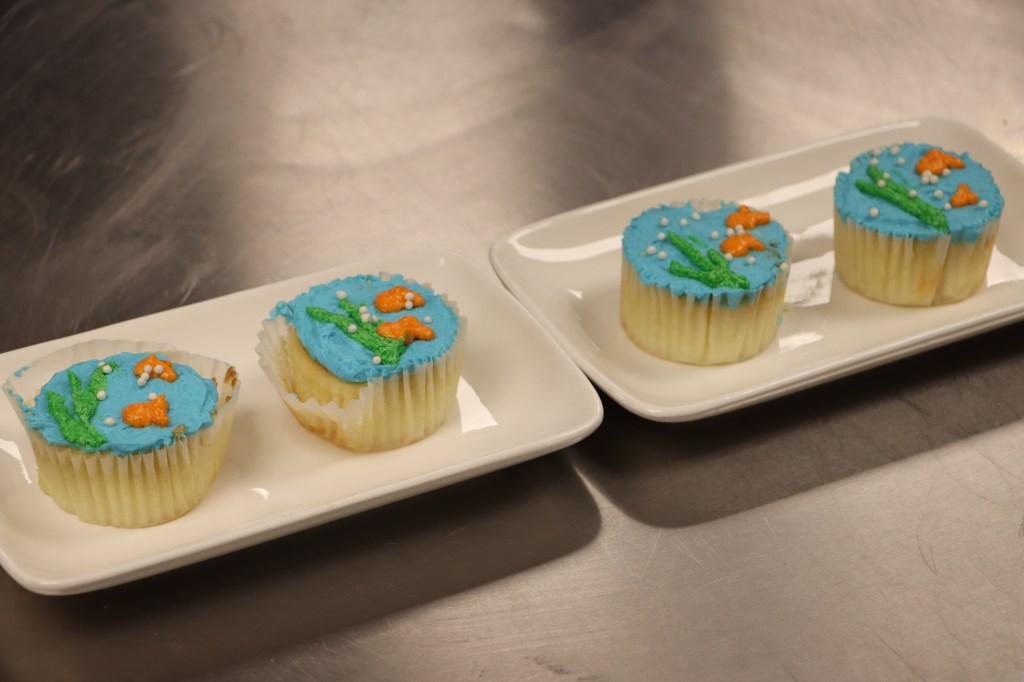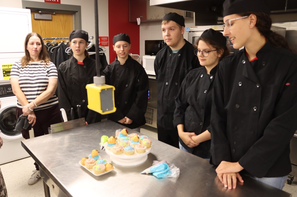 On Tuesday, Sept. 15, Mrs. Corley’s Baking and Pastry 1 class held their first “Cupcake Wars” of the year. Students worked in teams and put their baking skills to the test. The teams’ creations were judged based on appearance and taste. The theme was “Cartoons,” therefore, “appearance” was judged in that category. Judges (a.k.a. hungry teachers) were treated to samples of each of the cupcakes and gave their evaluations.