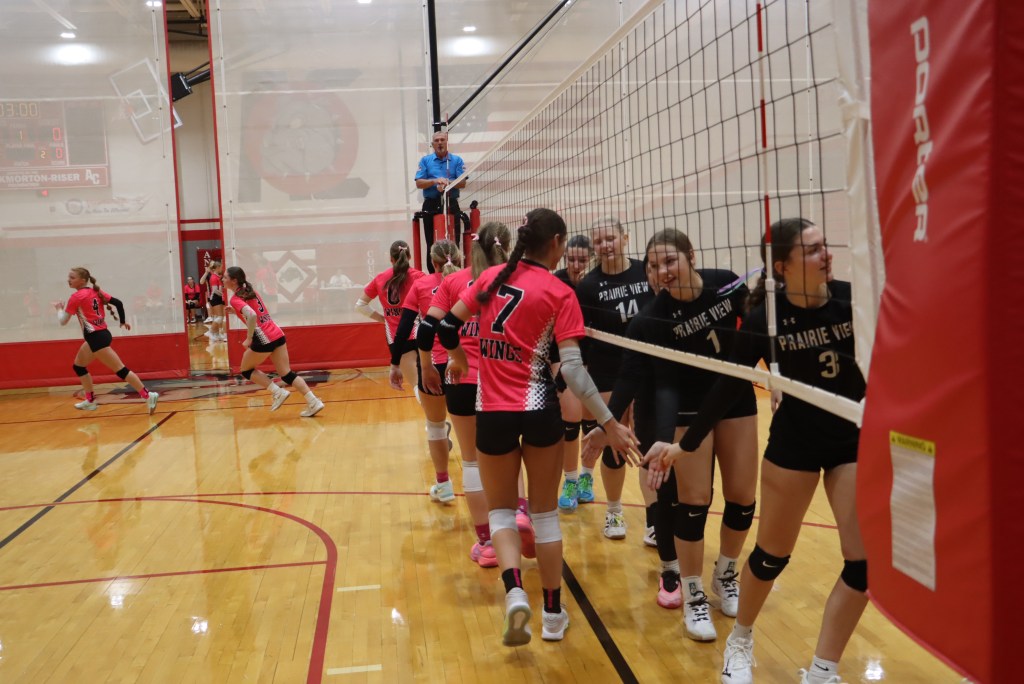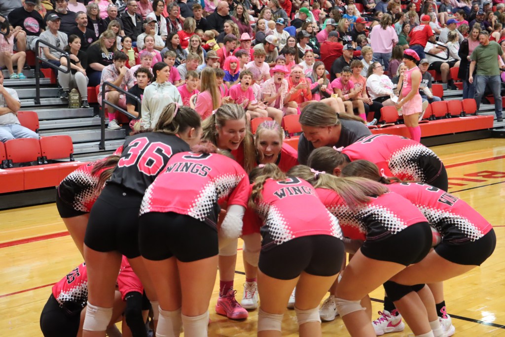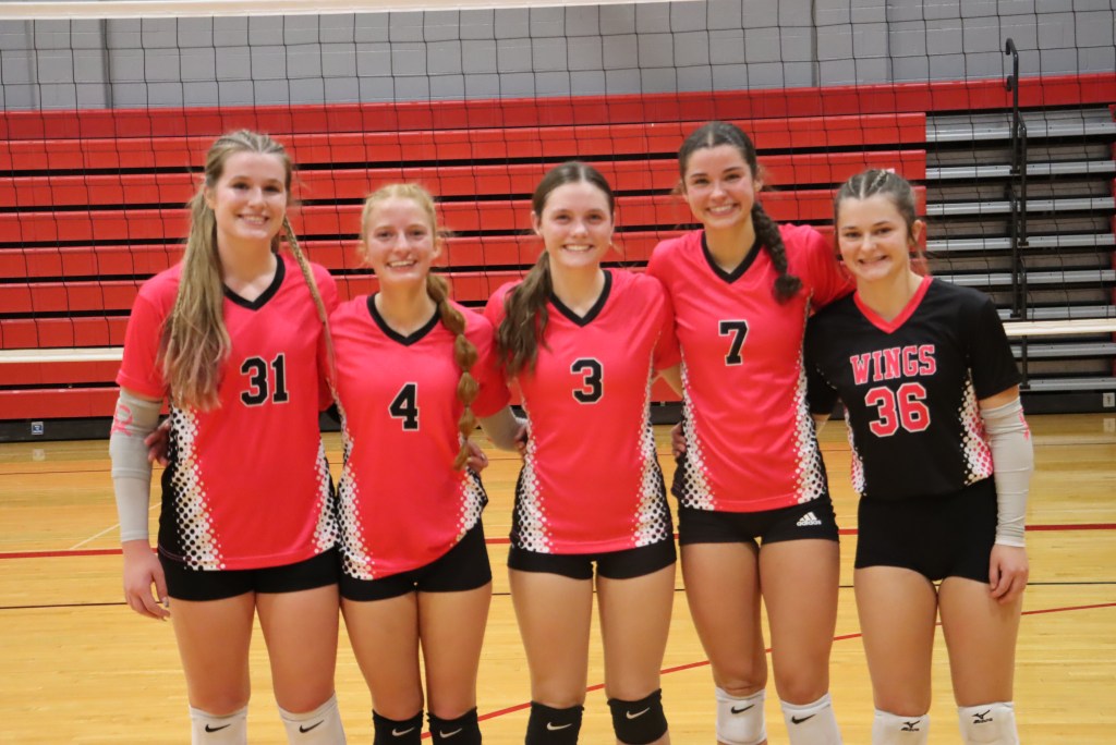 The junior varsity and varsity teams each won their games. The varsity scores were 25-17, 25-15 against Prairie View and 25-15, 20-25, 25-15 against Osawatomie. The game also raised $435 for WINGS. Altogether, the students raised $1,137.00 for W.I.N.G.S.