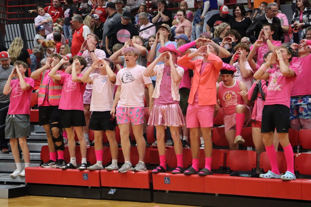 On the first Friday in October, the 3rd, football players, cheerleaders, dancers and the home crowd decked themselves in pink. At halftime, the cheer and dance teams presented the W.I.N.G.S. organization with a check from donations collected throughout the week.