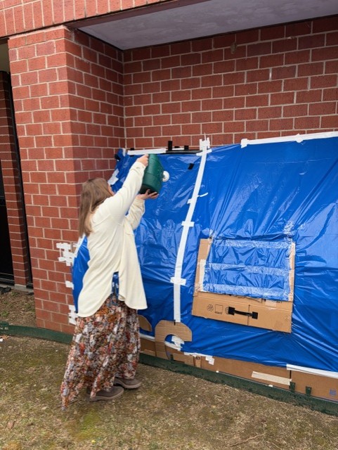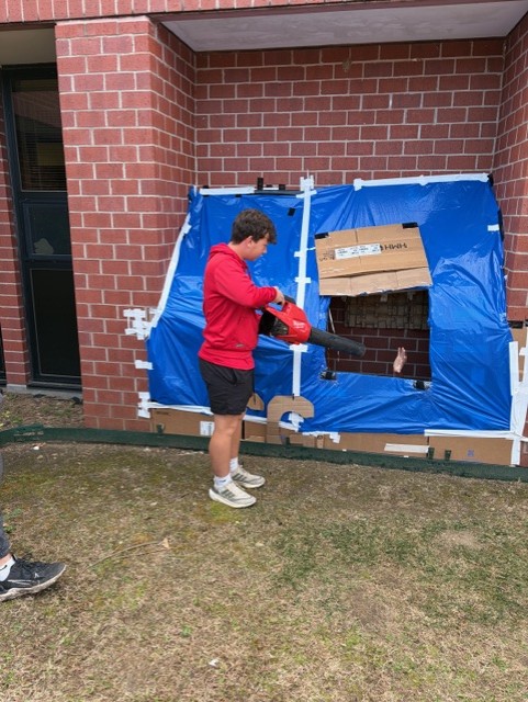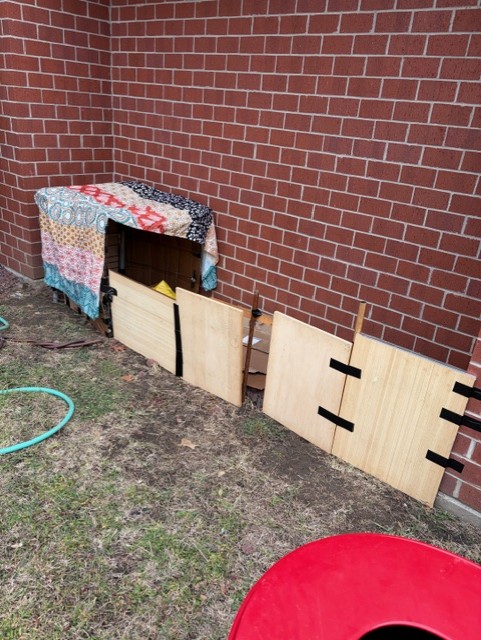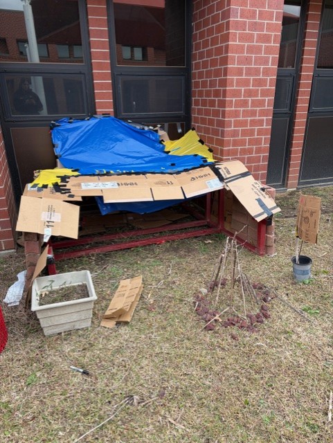 Mrs. Elliott’s English 12 students have been building homeless shelters in the courtyard. This project is designed to help students connect with the text, The Glass Castle (by Jeanette Walls). The memoir touches on homelessness, and students have been exploring the multiple definitions of homelessness.