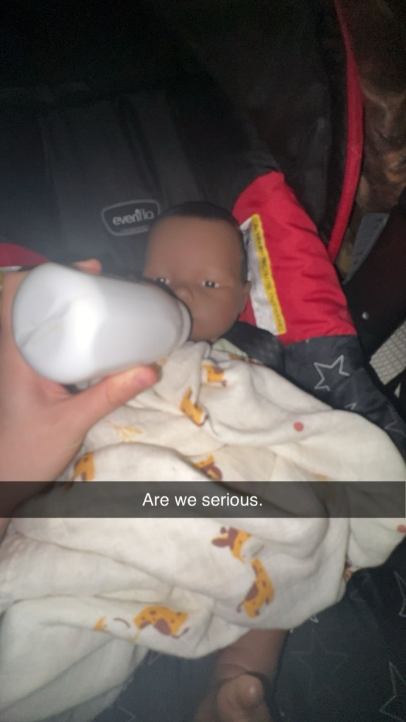Many students said they enjoyed the time with the baby, but it was a struggle keeping up with its needs. When asked how she fared with her baby over the weekend. Sophomore Lilly Kent (pictured on left) replied , “It was actually really fun, and my friends hung out with them. The only really bad thing was that it woke me up every hour one night.”